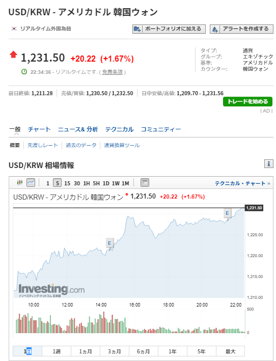 interested, 韓国, 韓国経済 韓国、もうダメだな。ドルウォンレート1,230突破! 2020-03-16 / 韓国、もうダメだな。ドルウォンレート1,230突破! kospiもKosdaqもダメそう。 デフォルトすると日本のマーケットへの影響もありそうです。 株式、下げ相場継続かな。 2020/03/16 22:36 韓国総合株価指数KOSPI:IND 1,714.86 コスダック指数KOSDAQ:IND 504.51 韓国経済デフォルトまったなし!1200ウォン突破!!*1210ウォンも突破! \ 最新情報をチェック / FacebookXBlueskyHatenaCopy